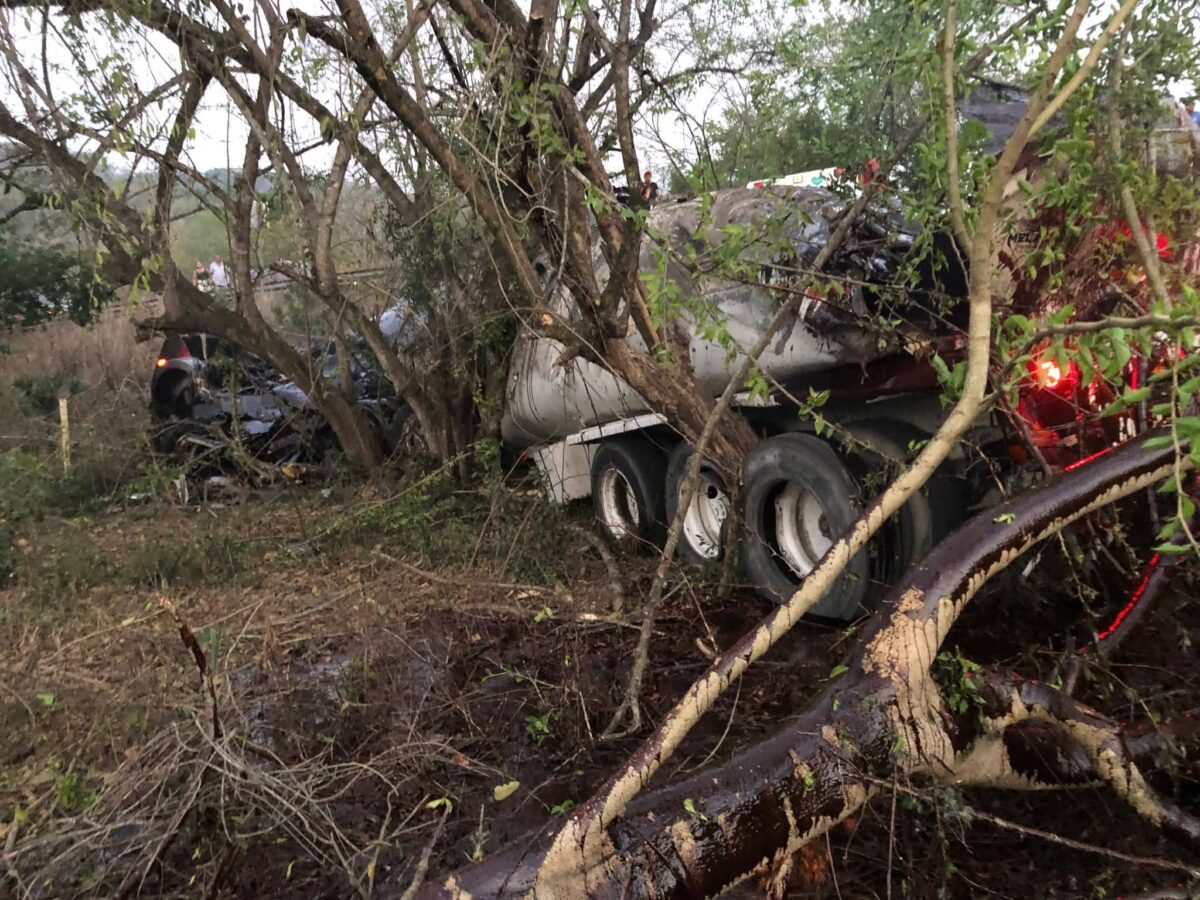 También se ubica una camioneta tipo pickup doble cabina marca Ford Lariat con placas de identificación del Estado de Florida; en el asiento del copiloto se localiza una persona del sexo femenino con un chaleco balístico en color negro y en el asiento del conductor se encontró una persona del sexo masculino, que de igual manera viste un chaleco balístico en color negro, localizando también un arma de fuego larga calibre 308 y una corta así como un arma corta tipo revólver, y múltiples cartuchos esparcidos sobre la alfombra calibre 308 y .223 estos últimos en la parte trasera.