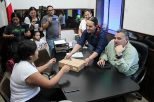 Acompañado de su esposa y presidenta del SMDIF Ena Avendaño Uscanga, narró que conoció el caso de Ma. Rosa Aguilar, cuando a través de una carta enviada por redes sociales, le explicó que necesitaba una computadora para estudiar en línea la preparatoria, pero debido a que es de escasos recursos y madre de dos hijos no podía comprarla, aunado a que sus padres al dedicarse a la recolección de desechos para su reciclaje, tampoco podían ayudarla para continuar con sus estudios.
