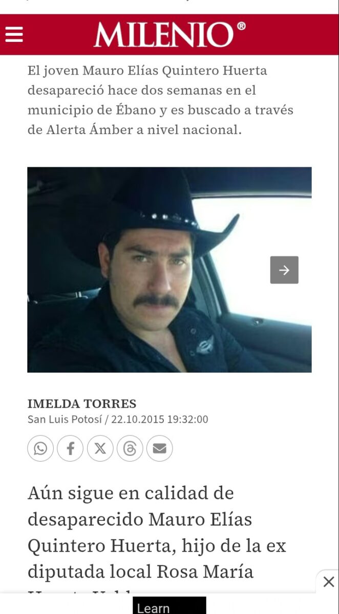 Mauro Elías Quintero Huerta tenía 27 años de edad cuando desapareció.