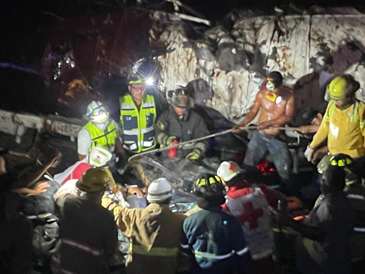 Comisión Nacional de Emergencia, Bomberos y Cruz Roja realizaron arduas tareas para poder sacar los cuerpos de entre los fierros.